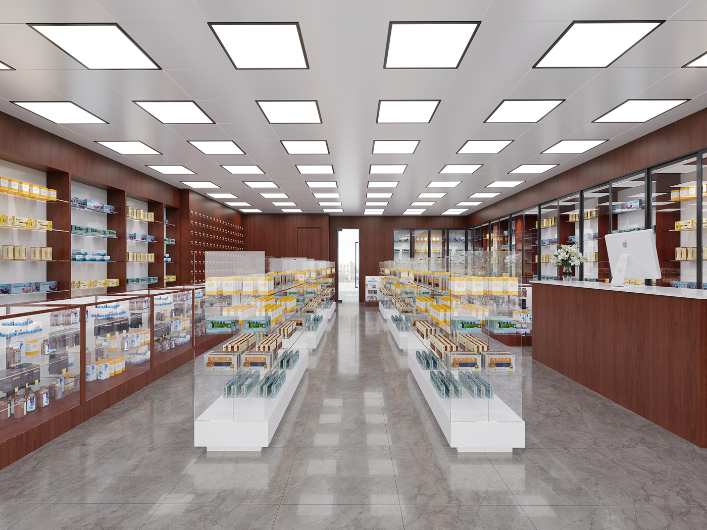 一般來講,好的藥房裝修要把設(shè)計成長長的購物通道,以避免顧客從捷徑通往收款處和出口,當(dāng)顧客走走看看時,便可能看到一些引起購買欲望的商品,從而增加購買率。